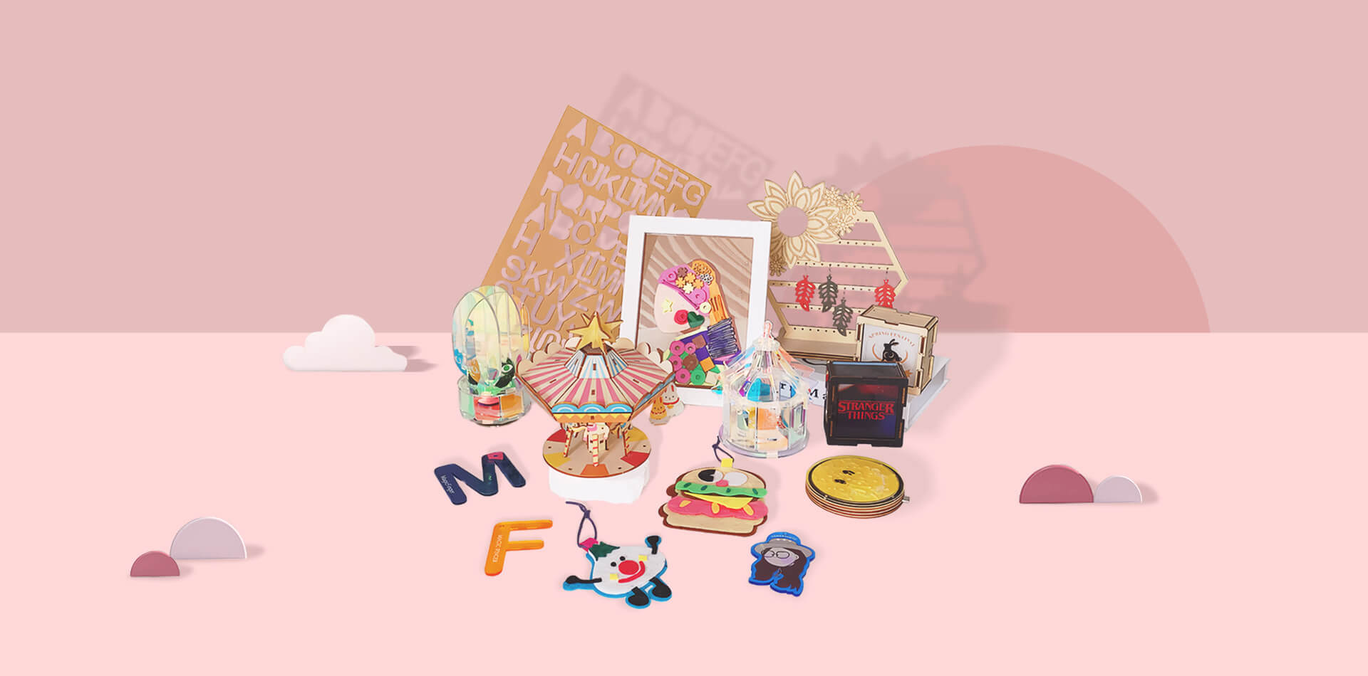 Choose any laser-safe materials for your creations, including the option to use CarveChic Materials for perfect engraving every time.