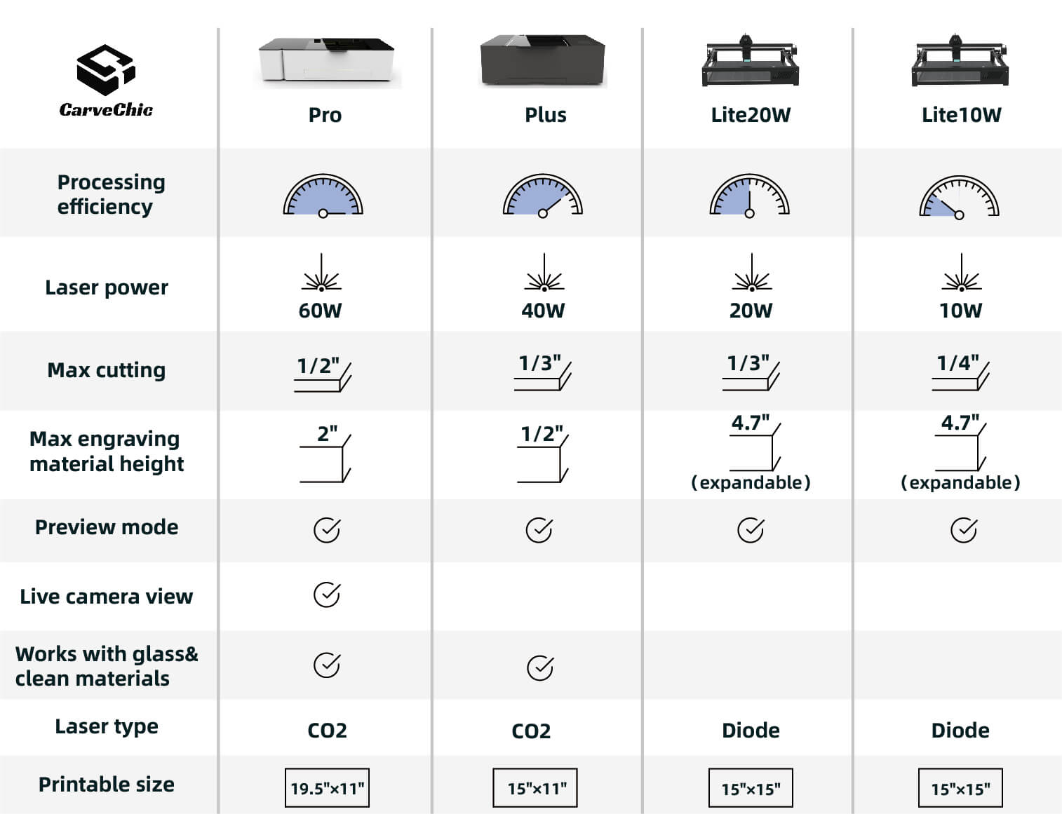 All CarveChic Performance Lasers are powerful enough to cut, engrave and score hundreds of materials. Which one will you own?